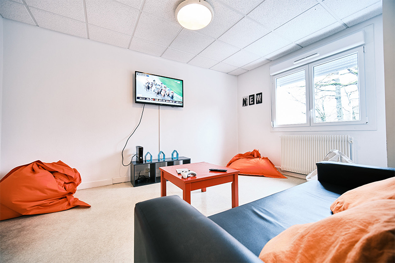 Dans nos résidences accessibles aux personnes à mobilité réduite, vous trouverez de nombreux équipements collectifs à votre disposition (salles de travail, salles de sport, salles TV, cuisines aménagées, douches et sanitaires, laverie…).